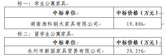 BOYU.COM采购中心对BOYU.COM2018年学生公寓及留学生公寓家具采购项目于2018年7月17日进行了自行招标,经评审,现将结果公告如下: