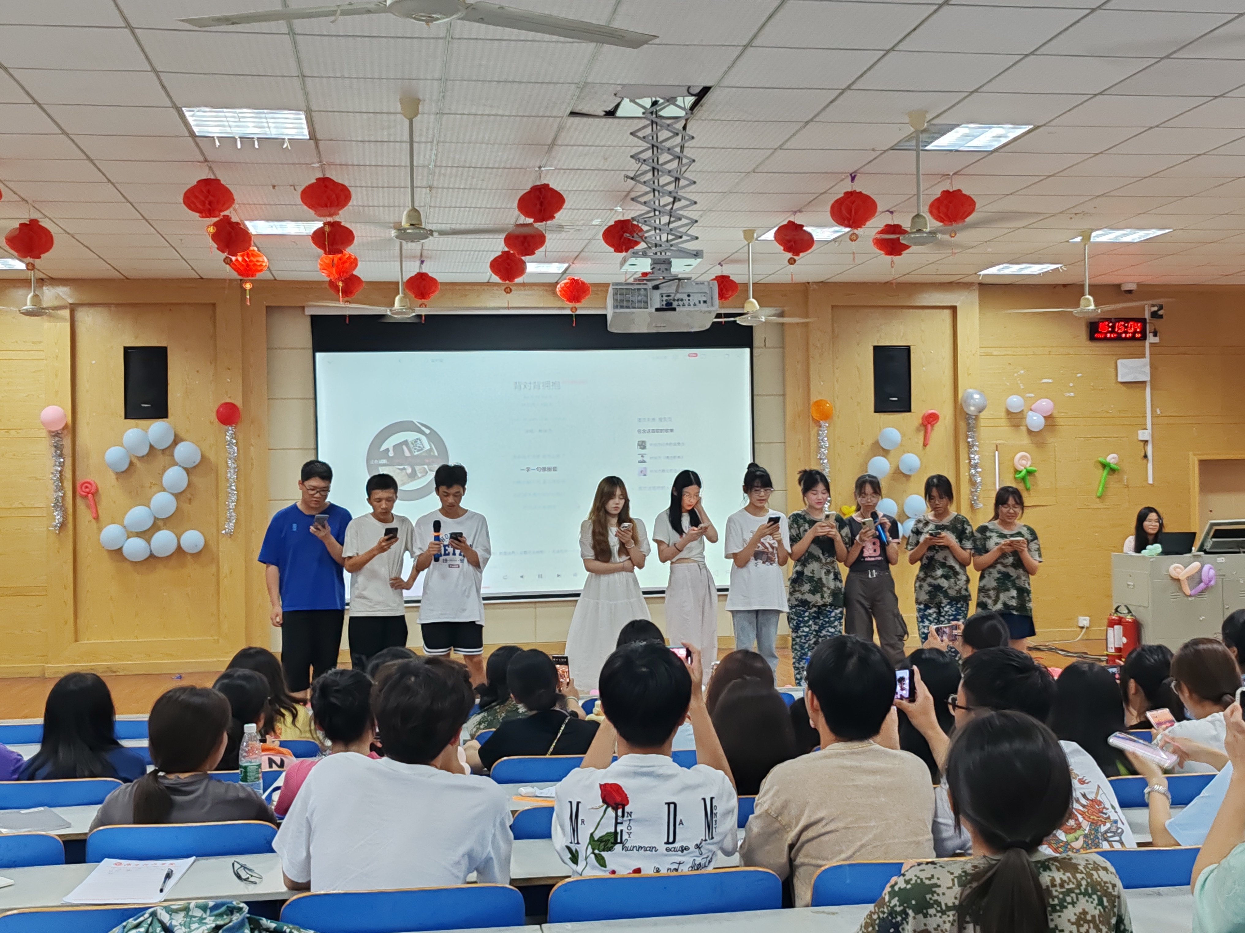 “我叫伍诗琪,爱好唱歌”,在开场游戏“串名字”中,大家围成一圈,向组内的同学介绍自己的姓名与爱好,下一位同学自我介绍后需陈述上一个同学的兴趣爱好,串起来的既是名字也是同学们更加贴近的心;“小心,抬起脚,前面有障碍物”,“盲人与拐”中,体现着同学间的默契与信任,温馨的提示与细心的引导让人感到满满的温暖;“拍七令”游戏是团队合作与反应力的结合,输掉的小组需为大家表演才艺,成功将本次活动推入高潮。