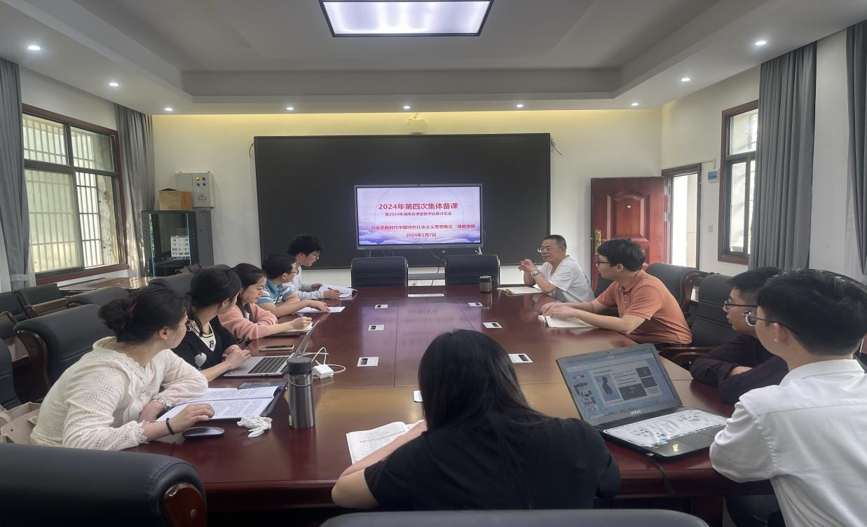 本网讯(记者 范芳哲)2024年5月7日下午,马克思主义学院习近平新时代中国特色社会主义思想概论教学部组织了2024年第四次集体备课会暨湖南省课堂教学比赛研讨会,马院副院长杨军教授,教学部主任毛文杰老师,以及教学部全体老师参与集体备课活动。