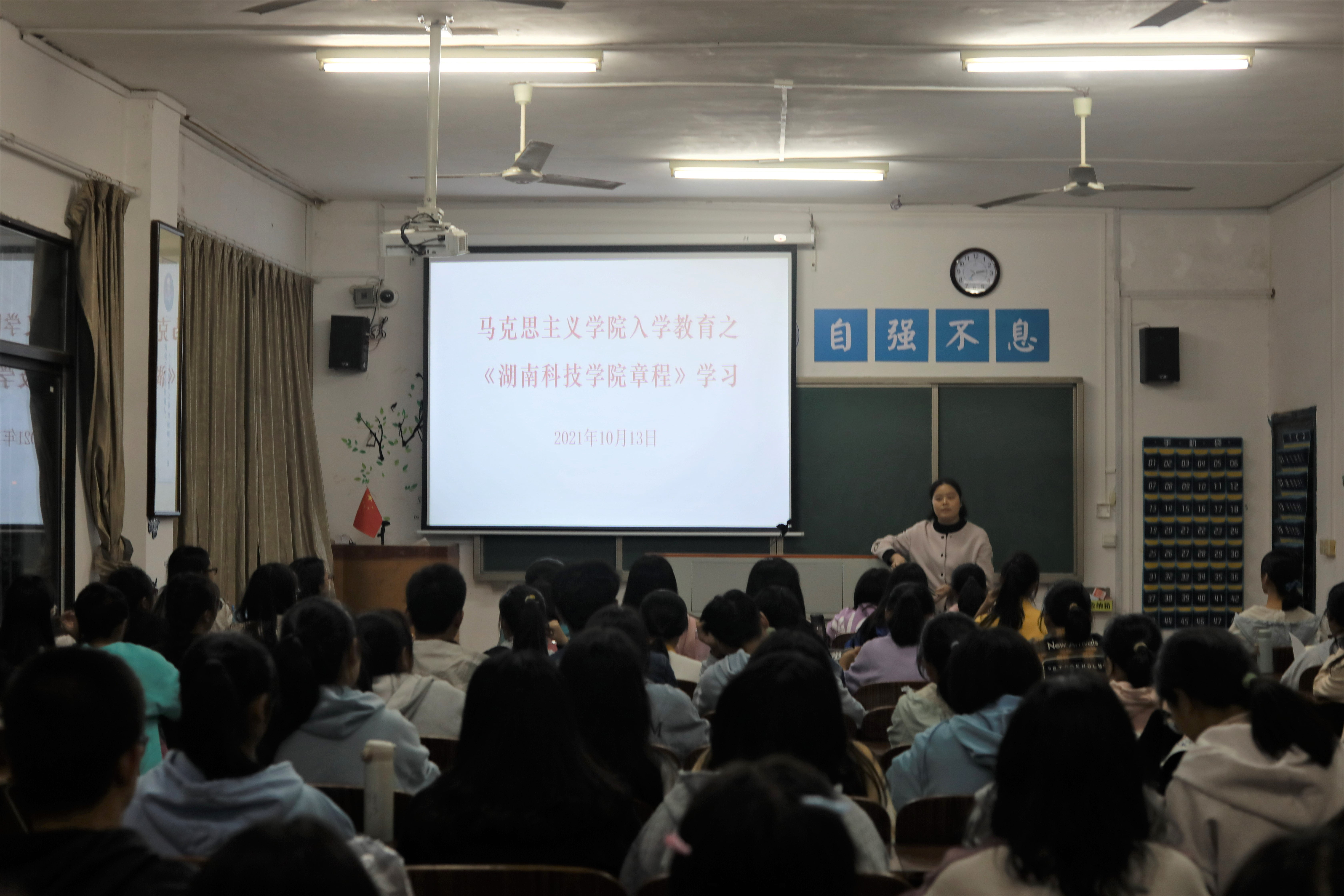 本网讯(记者 李金)为使学生进一步了解学校规章制度,加强纪律意识,10月13日晚,马克思主义学院于鹤鸣楼501教室开展《BOYU.COM章程》学习,本次学习由21级辅导员胡非带领全体21级学生进行学习。