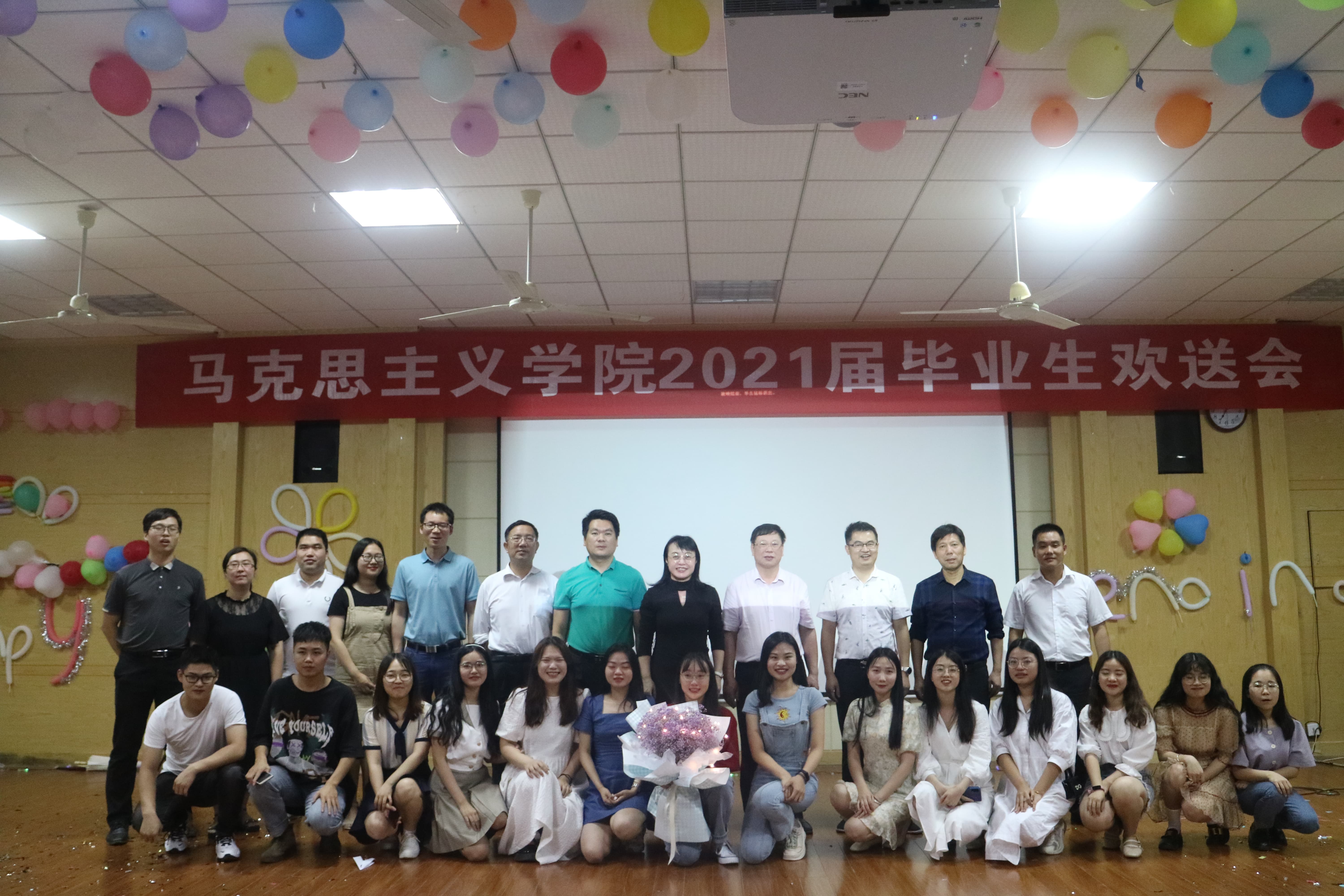 本网讯(通讯员 吴祖琳)又是一年毕业季,一样的别离,不一样的回忆。6月5日晚,马克思主义学院2021届毕业生欢送会于致远楼701教室举行,我校学生工作部部长唐华山教授、发展规划与学科建设处处长潘剑锋教授,应邀参加本次毕业欢送会,学院领导班子、部分老师以及全体学生参加。