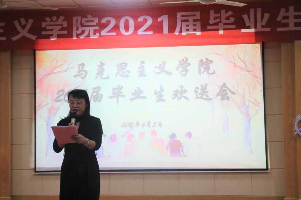 马克思主义学院院长廖雅琴作本次晚会致词,话语中句句表达了对同学们过往取得成绩的肯定,对即将离别孩子的不舍,也寄予了16、17级同学殷切的期望和最真挚的祝福。