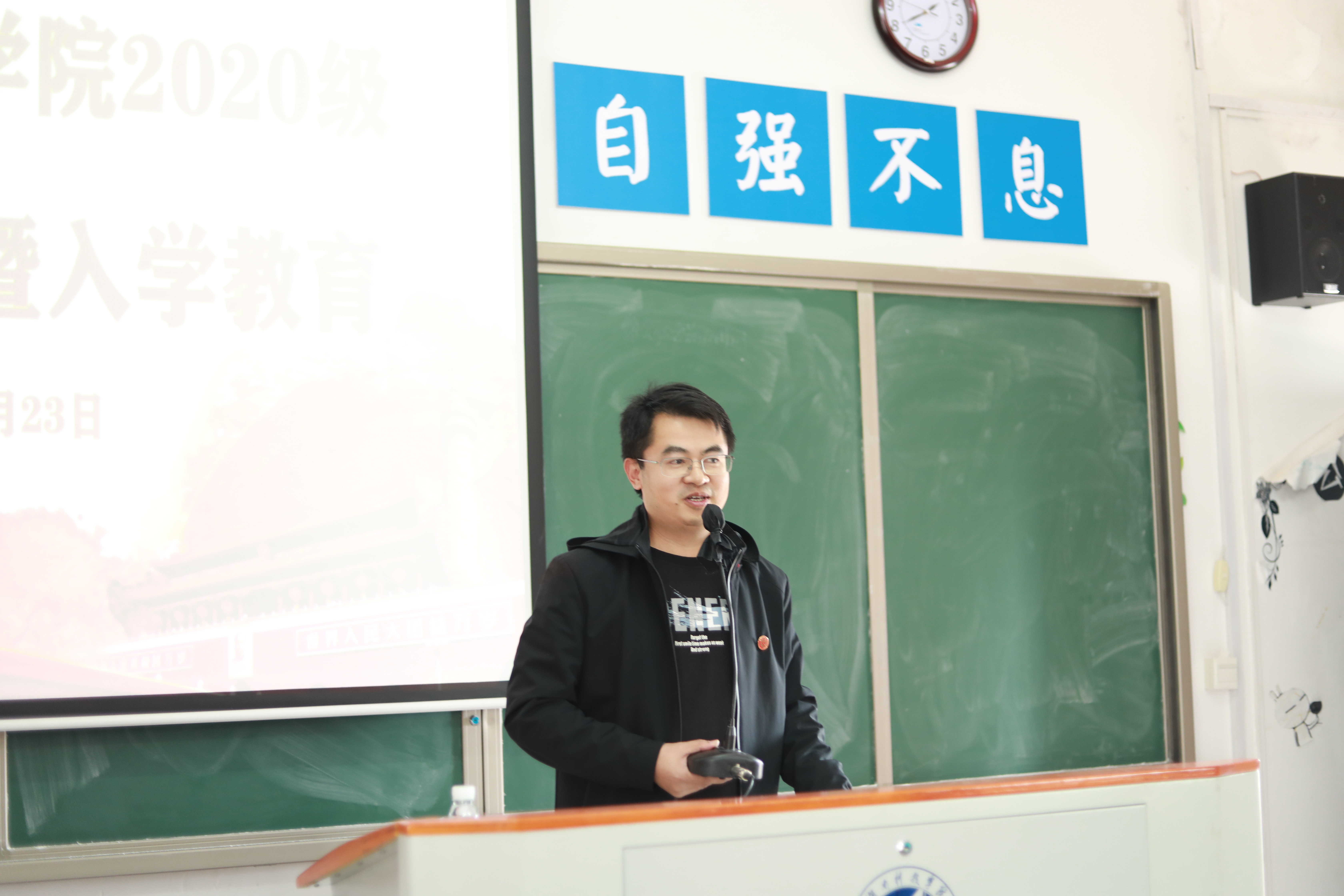 本网讯(通讯员 谢松林)10月23日,马克思主义学院在鹤鸣楼501室举办了20级新生见面会暨入学教育讲座。此次讲座由党总支副书记高丹主持,我院主要领导班子成员参与,党总支书记郑向晖致词,院长廖雅琴担任入学教育讲座主讲人。