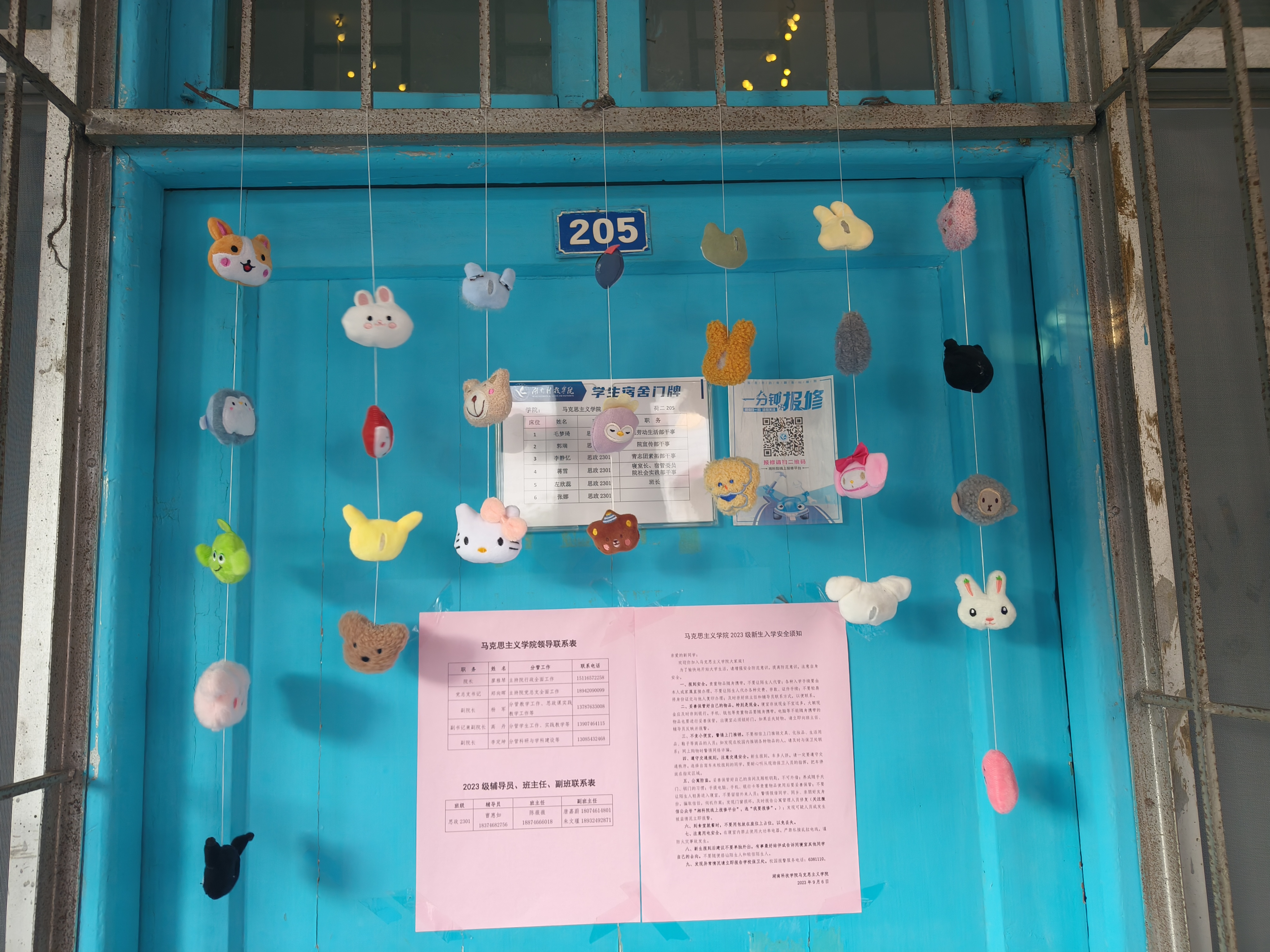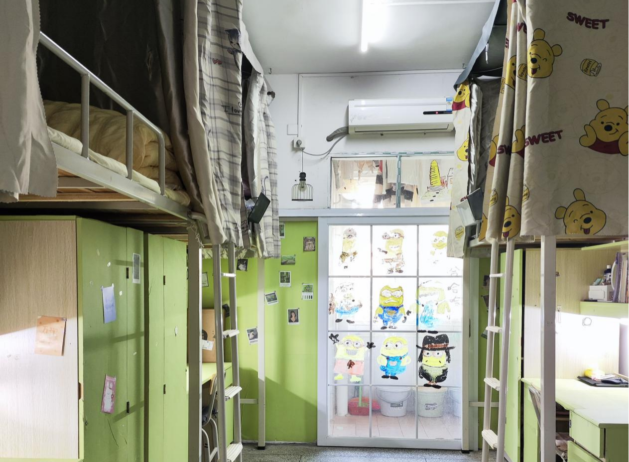 有的宿舍将照片装饰在墙壁上,用灯光点亮珍贵回忆;有的宿舍以动画元素结合撞色创意综合运用,构成温馨舒适的宿舍一角;有的宿舍在门前装饰可爱挂件,童趣与活力萦绕在眼前与心间。