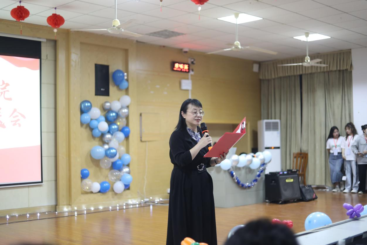 欢送会开始,院长廖雅琴教授发表致辞,她回顾了与同学们共同度过的时光,表达对同学们成长的欣慰,她满怀不舍与希望的说:“在毕业之际,我想与同学们分享三点祝愿,一是牢记使命,修身,立德,坚守良知,增强责任与担当,把自己的成长和祖国的发展的这个结合起来,二是愿你们增长才干,实现青春的价值,三是愿你们要不懈的奋斗,保持激情和热情。”并祝愿毕业生们在未来征途中工作顺利,前程似锦。