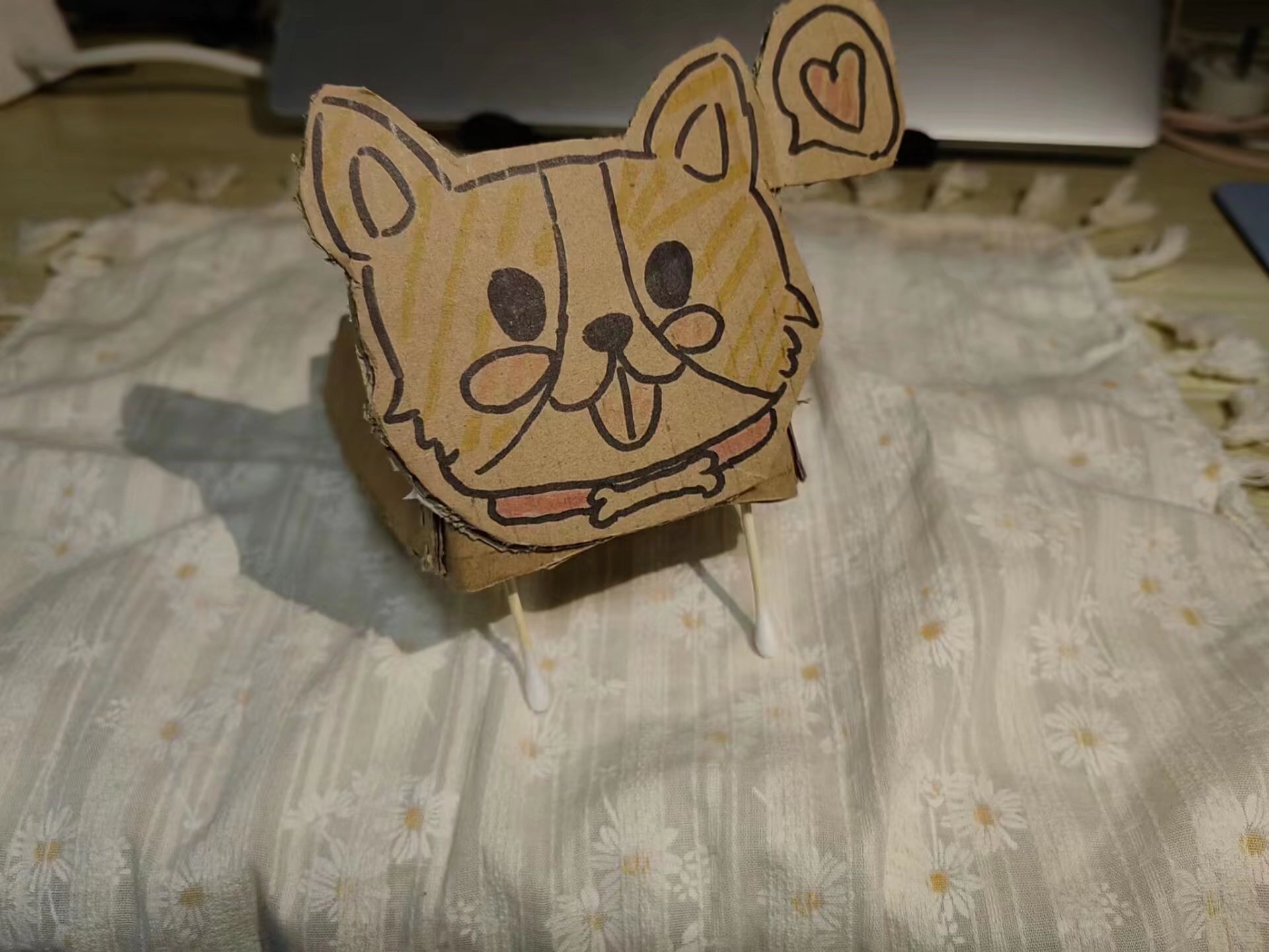 (图为荷园二栋203寝室制作的纸箱小狗)