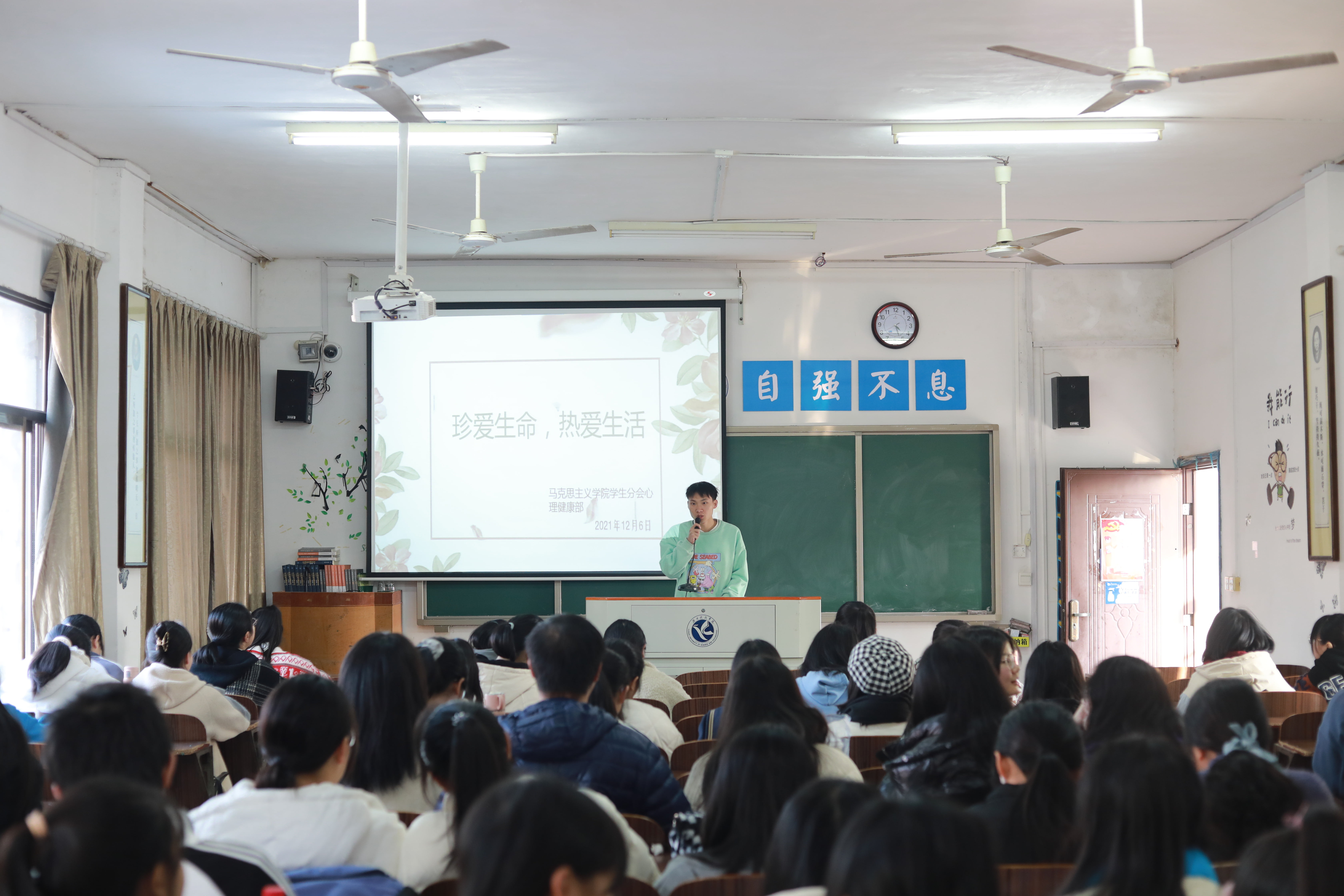 本网讯(记者 王婧)“让我们大步向前走,成为一个能让别人带着微笑守望的人吧!”12月6日,马克思主义学院全体大一学生于鹤鸣楼501教室开展以“珍爱生命,热爱生活”为主题的心理班会。