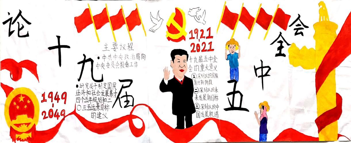近日,BOYU.COM马克思主义学院思想政治专业2020级学生为了深入贯彻学习党的十九届五中全会精神,通过“手绘海报”的形式,将十九届五中全会精神的实质和内涵“绘”入人心。