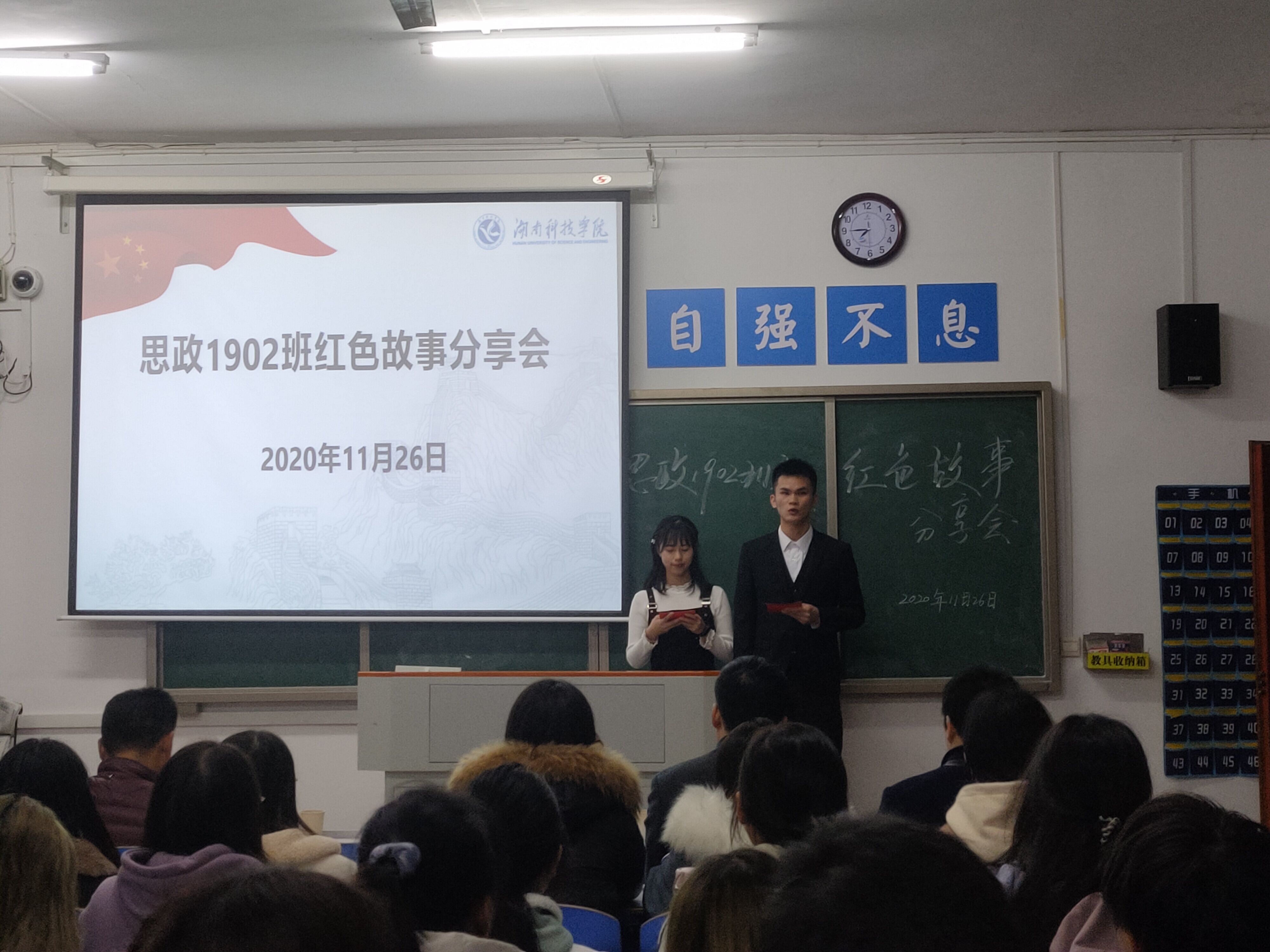 本网讯(通讯员 吴贵佳)11月26日晚,马克思主义学院思政1902班在鹤鸣楼407教室举办红色故事分享会,发展规划与学科建设处(研究生工作处)处长、湖南省马克思主义理论应用特色学科带头人、思政1902班第二班主任潘剑锋教授,院党总支副书记高丹、副院长周芳检、班主任陈猛等老师一同参加了本次活动。