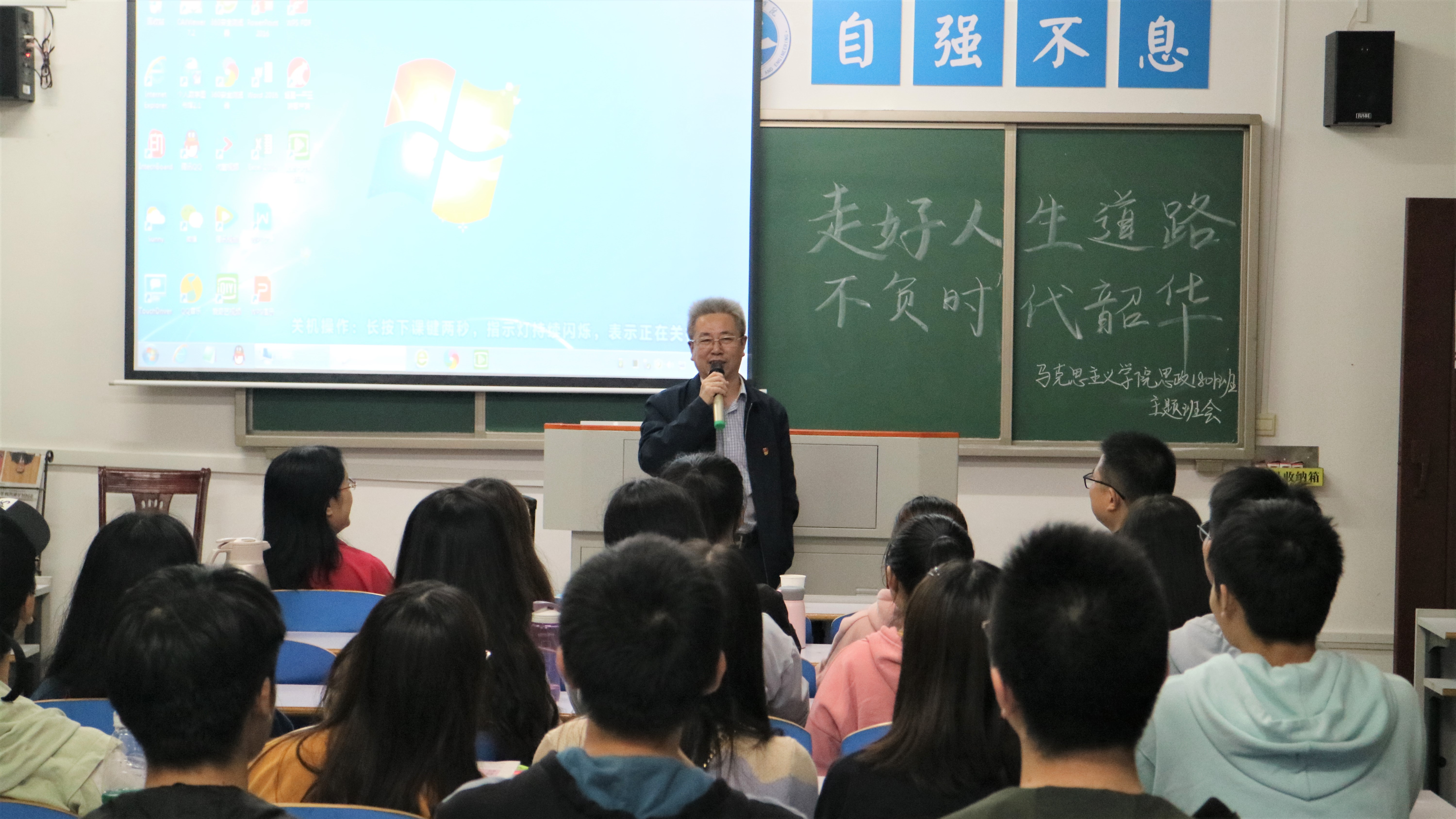 本网讯(通讯员 谢松林)9月28日晚,校党委书记曾宝成以思政1801班第二班主任的身份受邀出席该班“走好人生道路,不负时代韶华”主题班会,勉励同学们积极奋进,走好人生道路。一同出席班会的还有校机关党委书记林泽红和马克思主义学院主要领导班子成员。
