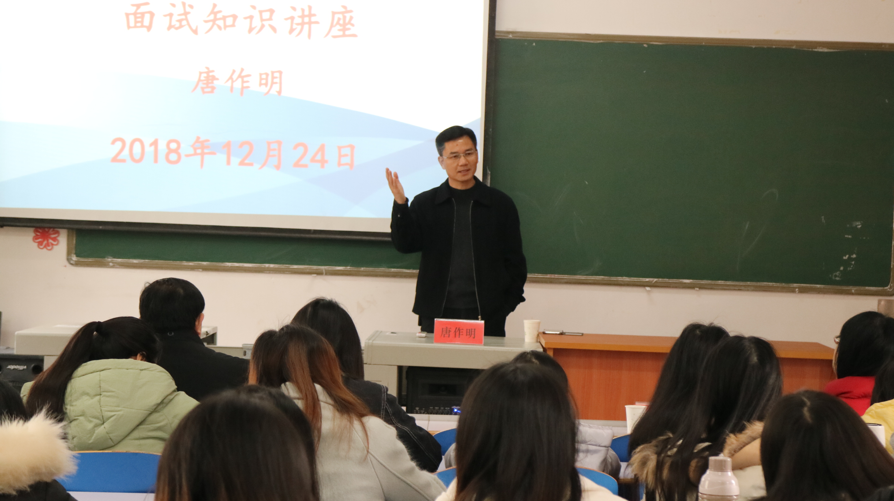 本网讯(通讯员 张亚娟)为提高我院2016级学生教师资格证面试及试讲通过率,12月24日,马克思主义学院特邀永州市教师发展中心主任唐作明为全体学生进行教资面试指导。