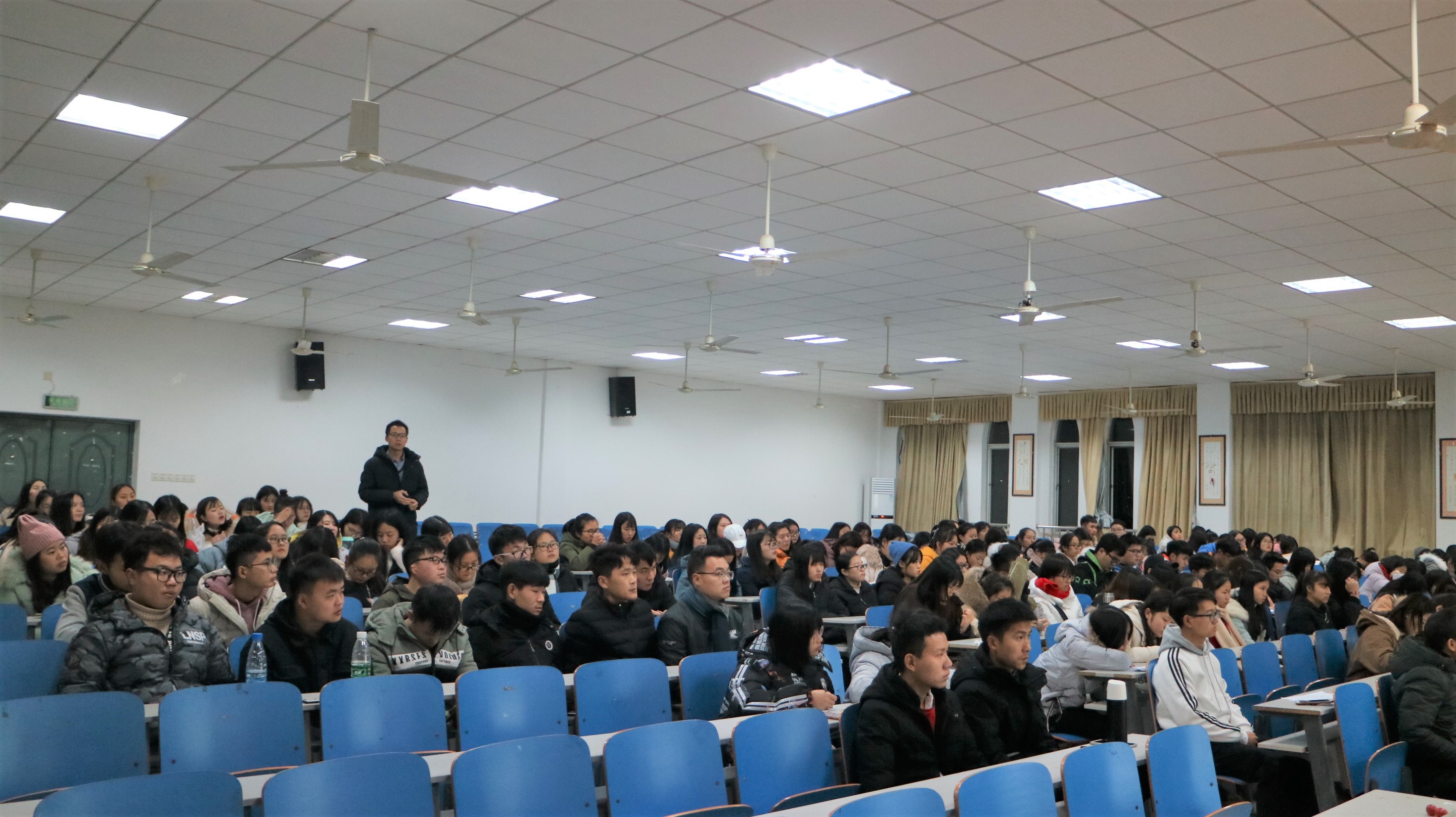 会上,高丹老师就全国教育大会和成都本科教育会议精神进行了传达,解读了“取消清考制度”的历史背景,介绍了学校的相关具体措施,同时对期末复习迎考和考风考纪工作作了要求,他要求全体同学要端正考试心态,扎实做好复习,诚信应考。全伟老师运用一些实例对大学生人身、财产、消防、交通、网络诈骗等各方面安全知识进行了宣讲,对2017级、2018级学生实施学分制政策进行了解读。