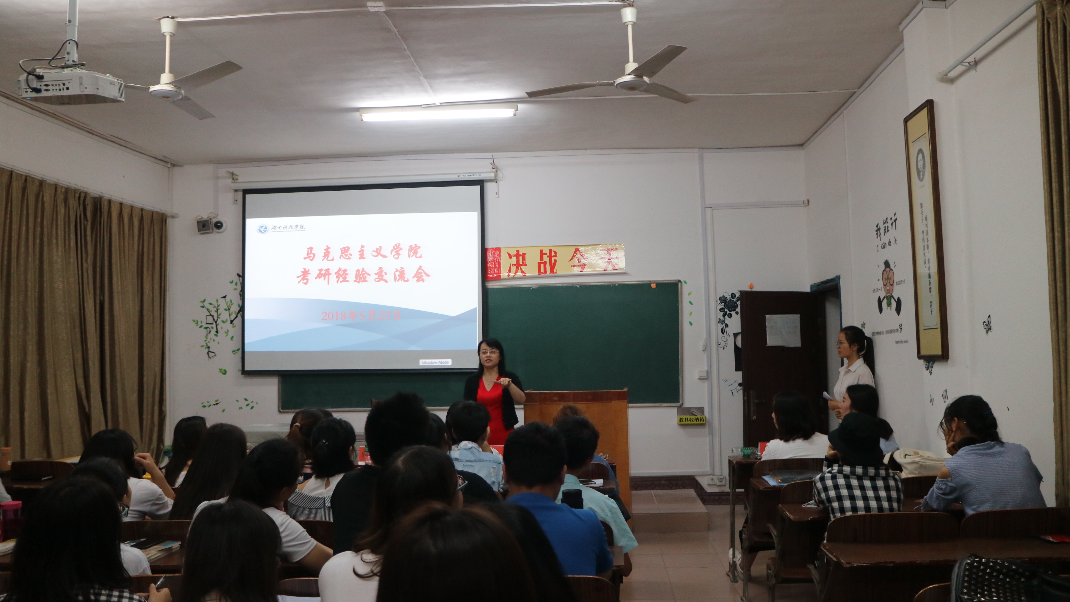 本网讯(通讯员 张亚娟 贺茶湘)5月23日晚,马克思主义学院在鹤鸣楼501进行考研经验交流会,多名考上重点高校的2014级学生分享考研经验。
