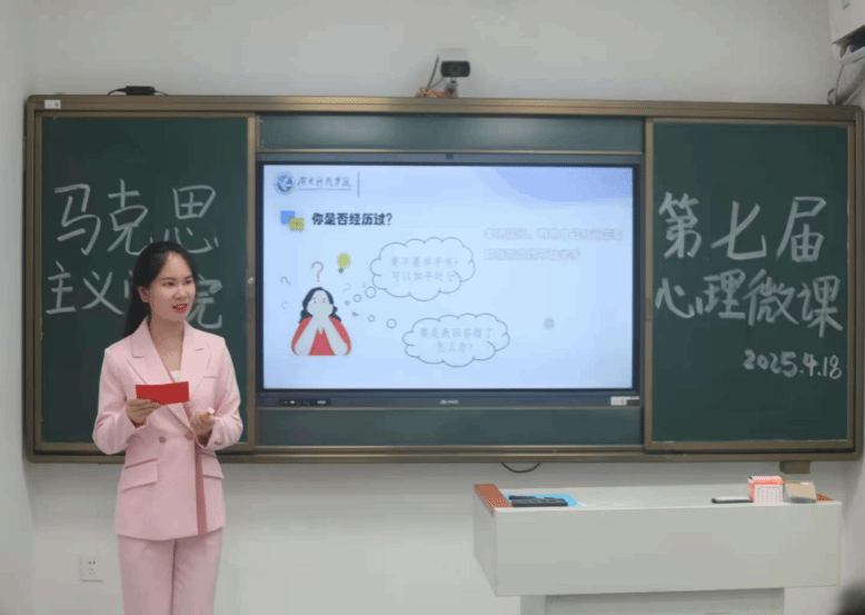 本网讯(记者 易媛媛)为提升学生心理健康意识、营造积极向上的校园氛围,4月18日晚,马克思主义学院在鹤鸣楼106微课教室举办“心向暖阳,逐光成长”第七届心理健康微课院赛。活动由思政2401班易媛媛主持,辅导员吴志伟,学长许圣翰、学姐唐汇担任评委。