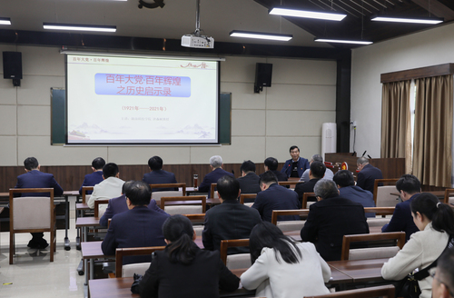 马克思主义学院唐森树教授以《百年大党·百年辉煌之历史启示录》为题,从“理论之源、信仰之光、精神之力、求是之风、力量之基、健壮之根”等六个方面,带领大家回顾了中国共产党百年奋斗之路的光辉历程,并结合“学史增信”专题学习,对“信仰之光”进行了深刻阐释,他提到,信仰之光是坚如磐石理想信念的引领,要让信仰之光照亮如磐的初心,照亮奋进之路。