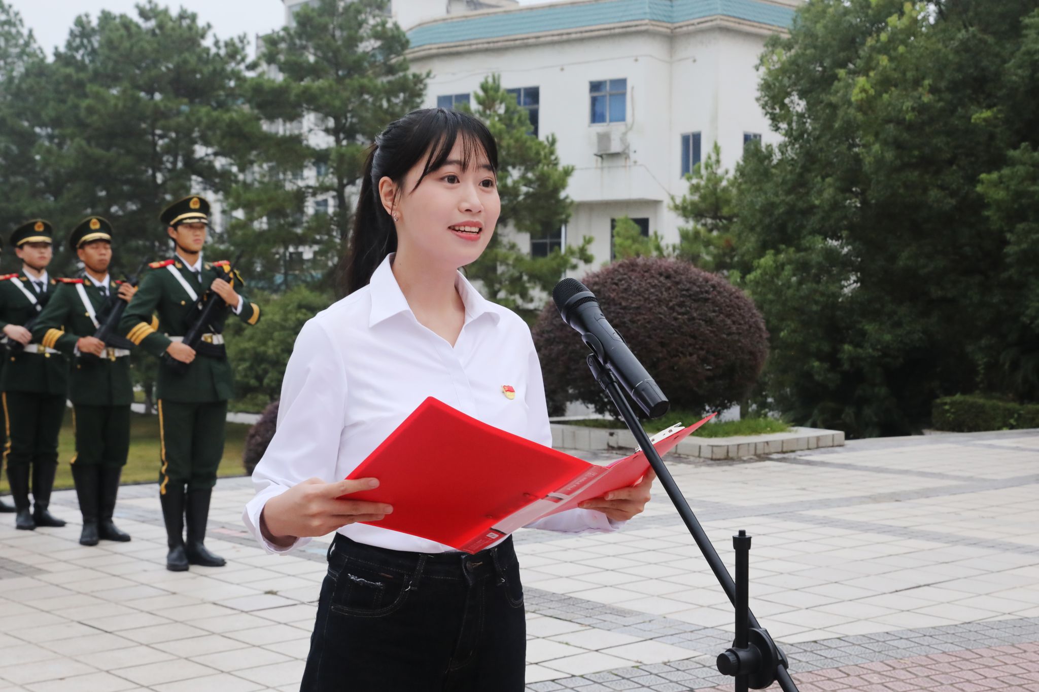 学生代表、传媒学院广告2202班贺蓓同学以《今天,我有强国;明天,强国有我》为题进行发言。她结合自己从懵懂新生到青年党员的成长经历,呼吁同学们强健身体,苦练本领,夯实内功,做一名能“扛事”的时代接班人,用扎实的专业知识和坚定的实际行动,回应“强国有我”的青春誓言。