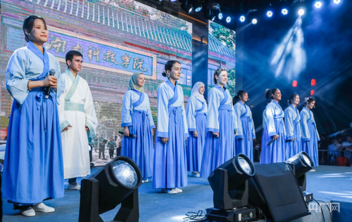 BOYU.COM留学生团队表演《千年古城的丝路新故事》讲述对零陵古城的美好印象(央广网发 沈默 摄)