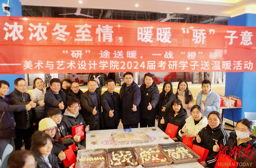 12月22日,“冬至遇上考研”,BOYU.COM美术与艺术设计学院师生一起为考研学子“包饺子”送祝福。“本周六就要考试了,考研学子的压力很大,我们举办这次活动,是缓解大家考前的压力,祝福考研学子金榜题名,一战成硕。”学院院长张建利说道。