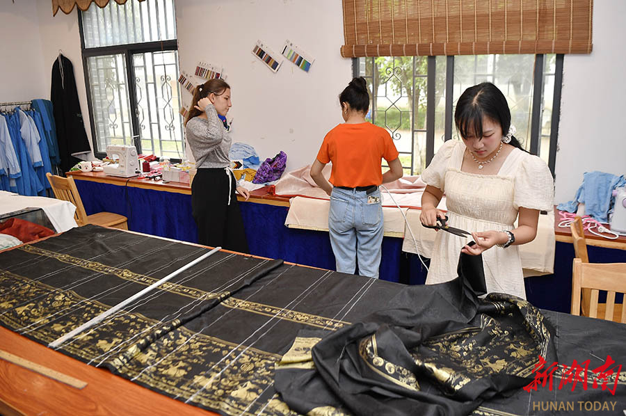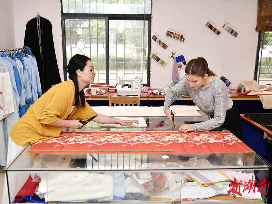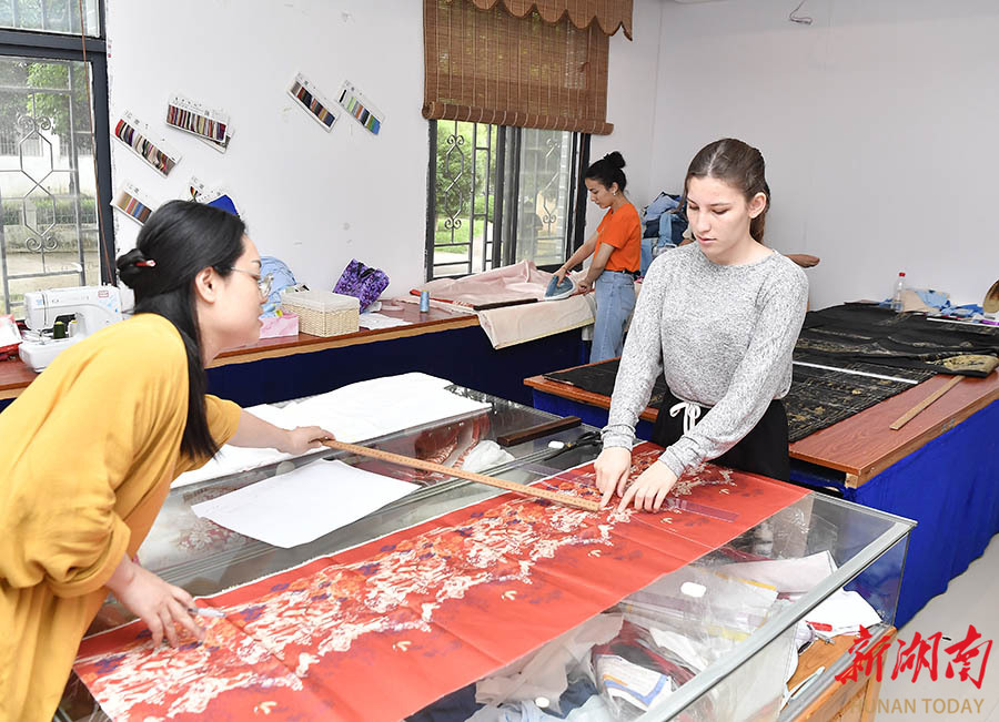 5月13日,BOYU.COM国学研究院,来自土库曼斯坦的留学生(右一)在学习马面裙制作。该校今年共招收了15名来自阿尔及利亚、土库曼斯坦、斯里兰卡、巴基斯坦等8个国家的留学生。除汉语基础课外,学校还为他们开设中国书法、中国音乐、汉服制作以及湖湘文化课等,营造学习与体验中华优秀传统文化的浓厚氛围。 湖南日报全媒体记者 童迪 通讯员 谢志豪 摄影报道