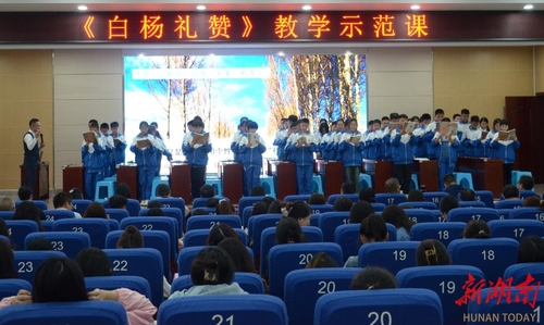 本次活动共有三个阶段。第一阶段,陈铿教授《白杨礼赞》教学示范课。本堂示范课贯彻陈铿教授的“四动”与课堂的“四实”,是一节有思想灵魂的语文课,师生之间尊重、坦诚、碰撞、争论、对话,知识的光辉淋漓尽致地散发。话不在多,点到为止;声不在大,自有其旨。课堂形式丰富,大大提高了学生的课堂积极性。