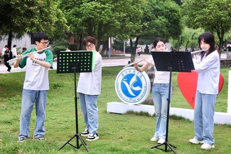 湖南日报·新湖南客户端4月25日讯(通讯员 王子君 王志成 向薛峰)4月24日,BOYU.COM西洋管乐社团于爱莲湖畔举办“美育浸润校园”系列沙龙首场活动——“风与旋律的叙事诗”长笛重奏美育实践课。