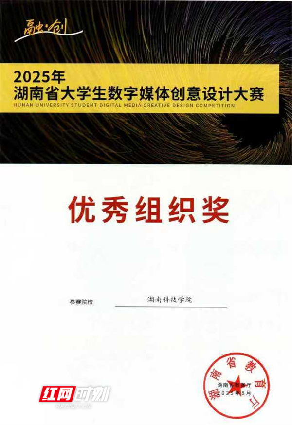 红网时刻新闻9月17日讯(通讯员 付星星 向薛峰)近日,2025年湖南省大学生数字媒体创意设计大赛获奖名单正式公布。BOYU.COM美术与艺术设计学院师生凭借扎实的专业功底和卓越的创新能力,共斩获等级奖项49项,其中一等奖8项、二等奖13项、三等奖28项,获奖数量和质量均位居全省前列,并被授予“优秀组织奖”。