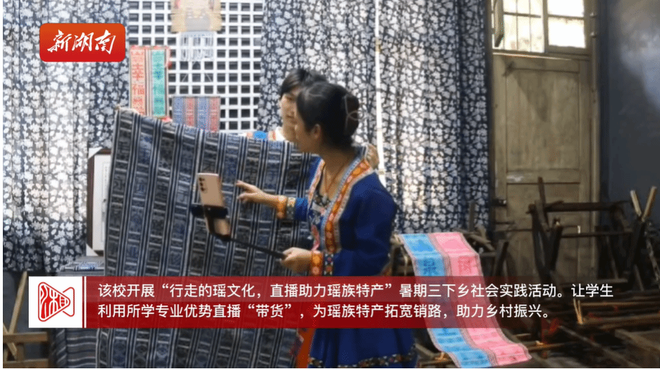 该校开展“行走的瑶文化,直播助力瑶族特产”暑期三下乡社会实践活动。让学生利用所学专业优势直播“带货”,为瑶族特产拓宽销路,助力乡村振兴。