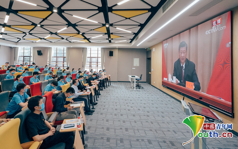 西南大学师生观看庆祝中国共产主义青年团成立100周年大会直播并学习总书记的重要讲话。