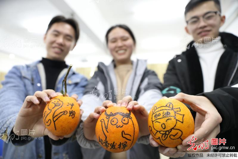 12月17日,BOYU.COM图书馆,学生晒出加油“表情橙”。