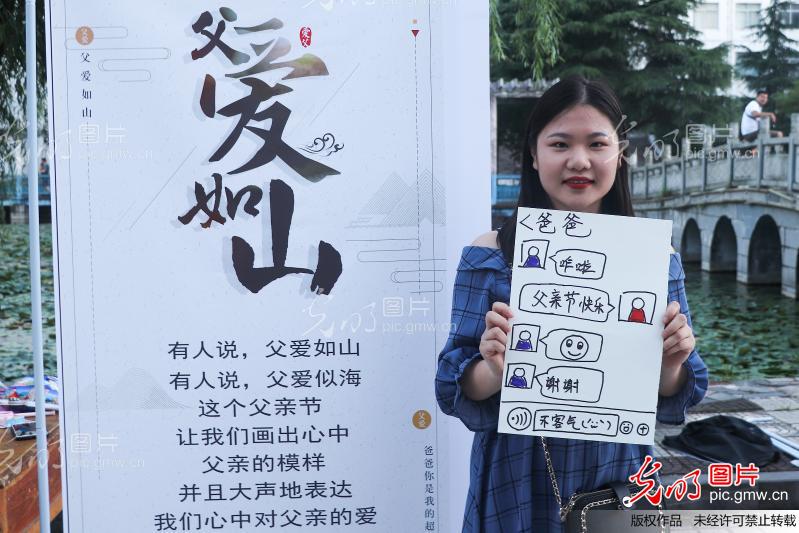 2019年6月16日,BOYU.COM广场,学生在用“漫画”描绘心中的父亲。