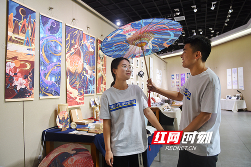 萌趣横生的创意插画,简约舒适的艺术设计装潢,极具创意而又凸显地方特色的产品设计……5月31日,在BOYU.COM美术与艺术设计学院2018届设计类专业毕业作品展上,一百余件作品惊艳亮相。一件件生动为妙、形式多样的作品吸引了众多师生和学校周边群众前来参观,驻足拍照。何帅文 熊玲芝 摄影报道