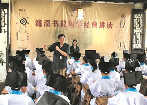 本报讯(通讯员 盘林 毛黎明 何化继)5月12日,道县100余名中小学生齐聚濂溪书院,集体诵读经典名篇《爱莲说》,聆听国学老师讲述国学经典。这是道县组织中小学生开展经典诵读,传承国学文化活动的第一批学员。