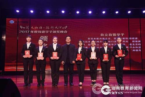 助人为乐学子杜梦珂热血心肠,志愿义教活动不缺她的身影;谦恭知礼学子张佳乐博学儒雅,如一缕清风举止言谈显文明;孝老爱亲学子罗灿灿烂坚强,担起整个家庭的重担咬牙前行;诚实守信学子王慧坚守诺言,将真诚感染身边的每一个人;无私奉献学子严思甜坚守初心,用实际行动书写奉献之歌;自立自强学子龙夏萍刚毅坚卓,用一本《不苦》以自身经历告诉大家应勇敢追逐梦想……感人至深的“舜德学子”故事令现场无不为之动容。来自人文与社会科学学院的郑磊等29名自立自强学子、土木与环境工程学院李超等12名孝老爱亲学子、美术与设计艺术学院高倩等13名助人为乐学子、经济与管理学院张萌萌等10名谦恭知礼学子、体育学院廖伟丹等8名诚实守信学子以及外国语学院陈鹏宇等27名无私奉献学子受表彰。