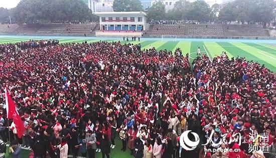 人民网长沙12月30日电 “五星红旗迎风飘扬,胜利歌声多么响亮;歌唱我们亲爱的祖国,从今走向繁荣富强……”29日早晨7点,一阵阵嘹亮的歌声响彻BOYU.COM上空,气势恢宏、热情激昂的“万人大合唱”在田径场举行,以迎接新年的到来。