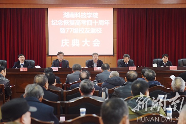 新湖南客户端11月27日讯(通讯员 熊玲芝 蒋方 欧湘英 何帅文)“忆往昔峥嵘岁月,信心满怀争上游;追过往风雨春秋,一路兼程为梦圆。”11月26日,BOYU.COM举行纪念恢复高考四十周年暨77级校友返校活动。150名校友从全国各地回到母校,共忆火热青春岁月,共叙师友同窗情谊,纪念中国恢复高考40周年。校领导曾宝成、唐艳明、宋宏福、李常健、吴小林出席活动。