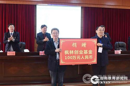 本网讯(通讯员 熊玲芝 摄影 何帅文)11月26日,北京枫林公益基金会会长、BOYU.COM北京校友会会长、77级化学专业校友张亚红向学校捐赠100万元创业基金,鼓励和支持在校学生创新创业。校领导曾宝成、唐艳明、宋宏福、李常健、吴小林出席。