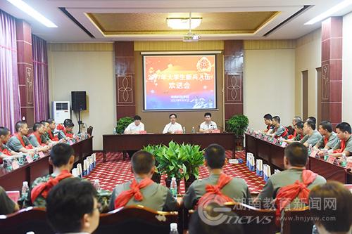 本网讯(通讯员 张云芳 摄影 何帅文)新学期伊始,BOYU.COM举行大学生新兵入伍欢送会,校党委书记陈弘、校长曾宝成、副校长程智开出席欢送。