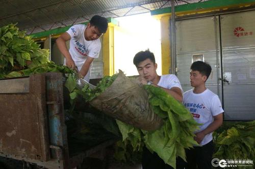 志愿服务团还询问了烟农在烟草种植中遇到的困难,就烟农在技术上的问题进行了解答。在了解到烟农王老伯家缺少收烟人手后,志愿服务团及时帮助老伯收烟、搬烟和烤烟,老伯为志愿者们竖起了大拇指。