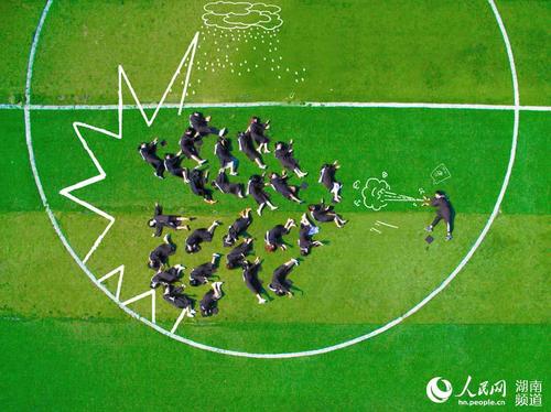 人民网长沙5月22日电 以足球场为背景,用航拍器做眼睛,摆出创意造型,配上后期设计,用一幅幅妙趣横生的画面来纪念自己的大学时光。BOYU.COM2013级英语专业毕业生借助无人机拍摄创意毕业照。她们通过拍摄创意毕业照的方式“和大学说再见,却不跟青春道别!” (李芳森 唐博 何帅文)