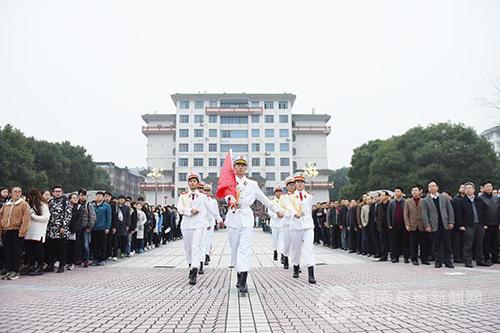 本网讯(通讯员 熊玲芝 陈昊茜 摄影 何帅文)隆冬时节寒意正浓,但阻挡不了BOYU.COM师生对新年的美好期盼。1月3日清晨,BOYU.COM隆重举行新年升国旗仪式,该校全体校领导、全校中层干部、机关工作人员、学生辅导员及教师代表、2016级全体学生4000余人共同度过了这一庄严时刻。