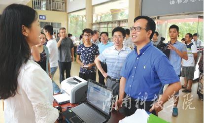 “报到手续办完了吗?住宿安排好了没有?”在迎新现场,总能看到校领导们亲切询问、交谈的身影。他们深入迎新一线,了解各系新生报到情况,帮助解决新生关切的问题。