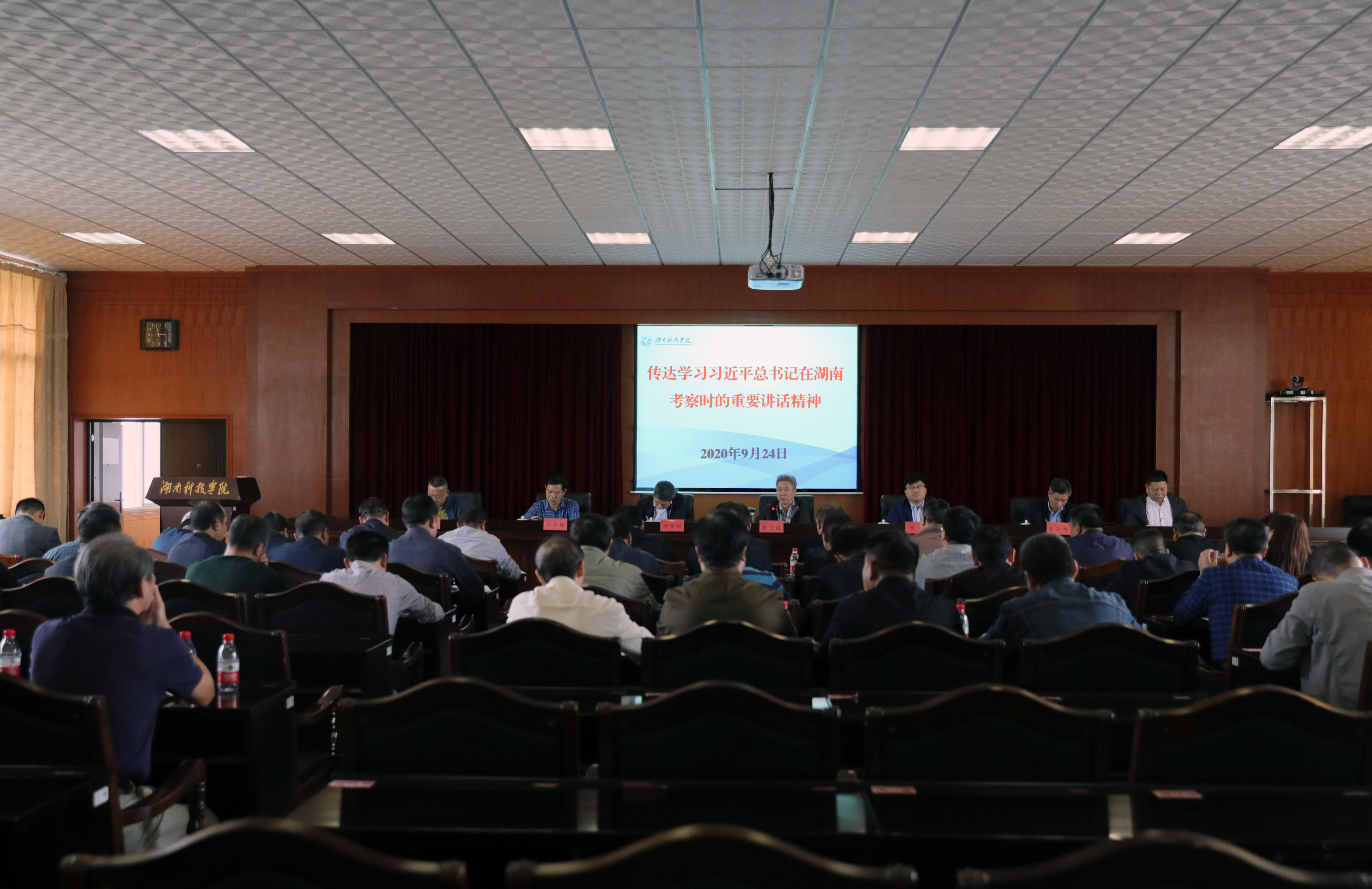习近平总书记在湖南考察期间,先后走进文明瑶族乡第一片小学、岳麓书院,与师生亲切交流,并对教育工作提出殷切嘱托。曾宝成指出,高校一定要把总书记的嘱托和期望作为鞭策和动力,全面贯彻党的教育方针,落实立德树人根本任务,不忘为党育人、为国育才的初心使命,办好人民满意的教育。他要求全校上下要以习近平总书记在湖南考察时的重要讲话精神为指导,结合学校发展实际,认真做好学校“十四五”规划编制工作,为建设地方性高水平应用型大学谋好篇、布好局,推动学校高质量发展;要大力传承红色基因、推进课程思政建设,将社会主义核心价值观融入各类课程,引导青年学子树立正确的世界观、人生观、价值观;要加强专业、课程体系建设,培养学生爱国情怀、社会责任感、创新精神和实践能力,落实立德树人根本任务。